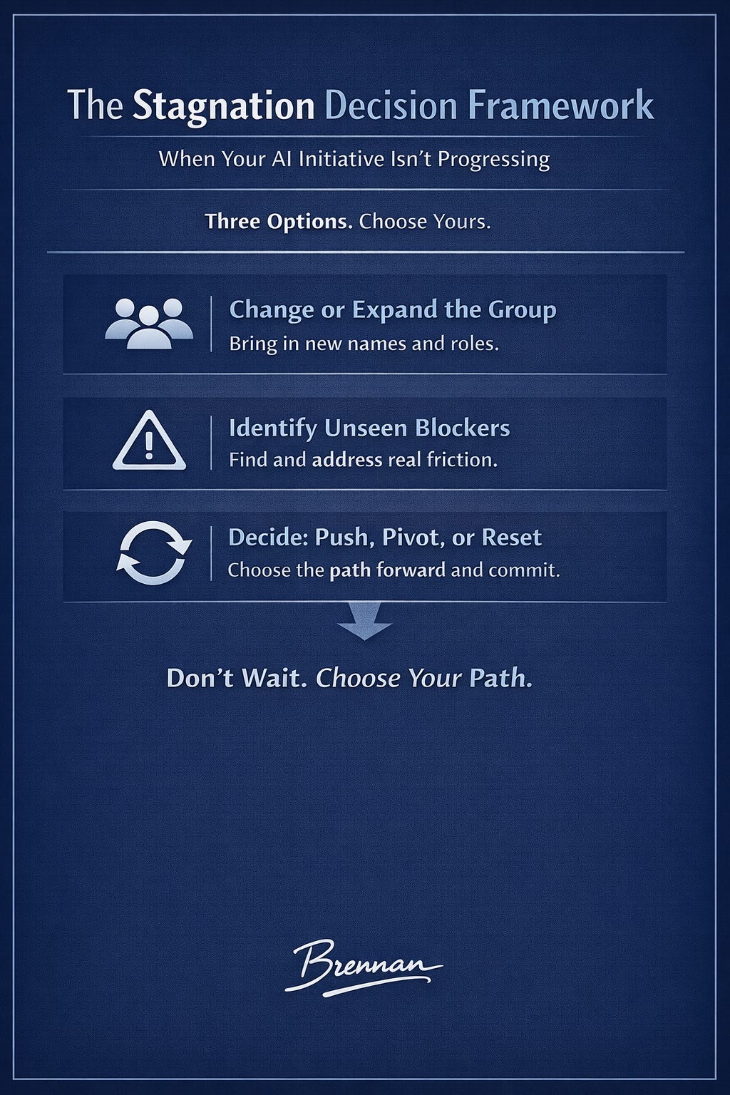 This is uncomfortable. The sunk cost is real. The stakeholder expectations are real. But the cost of delay is also real. Every week the decision waits, the initiative sinks deeper. Not into success. Into habit. Into expectation. Into the calendar.